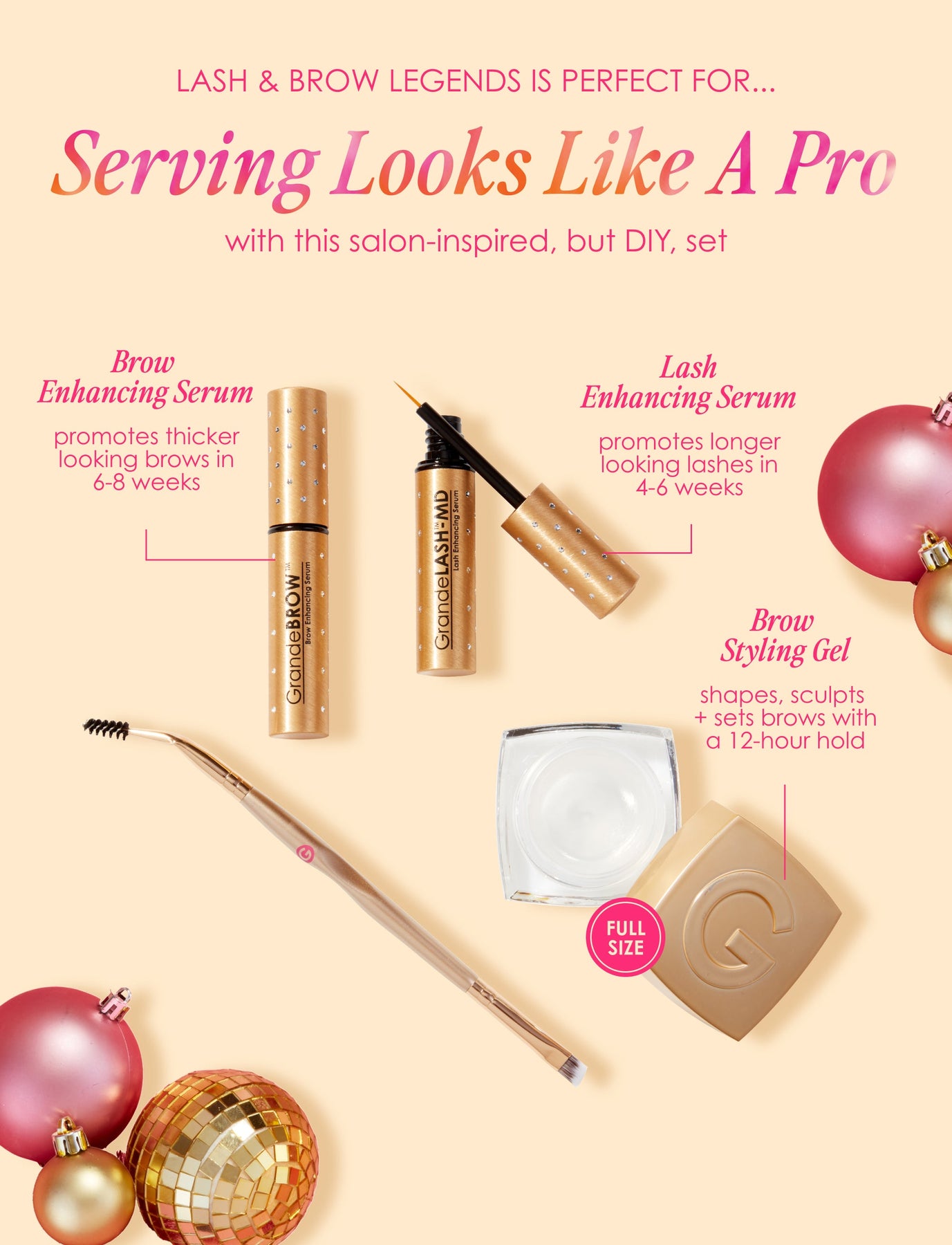 This season, we're longing for our best lash & brow era yet. Enter in: the Lash & Brow Legends set - perfectly curated with GrandeLASH-MD & GrandeBROW enhancing serums for longer looking lashes & fuller looking brows over time, plus a full size GrandeBROW-LAMINATE for a DIY pro-level laminated brow look.